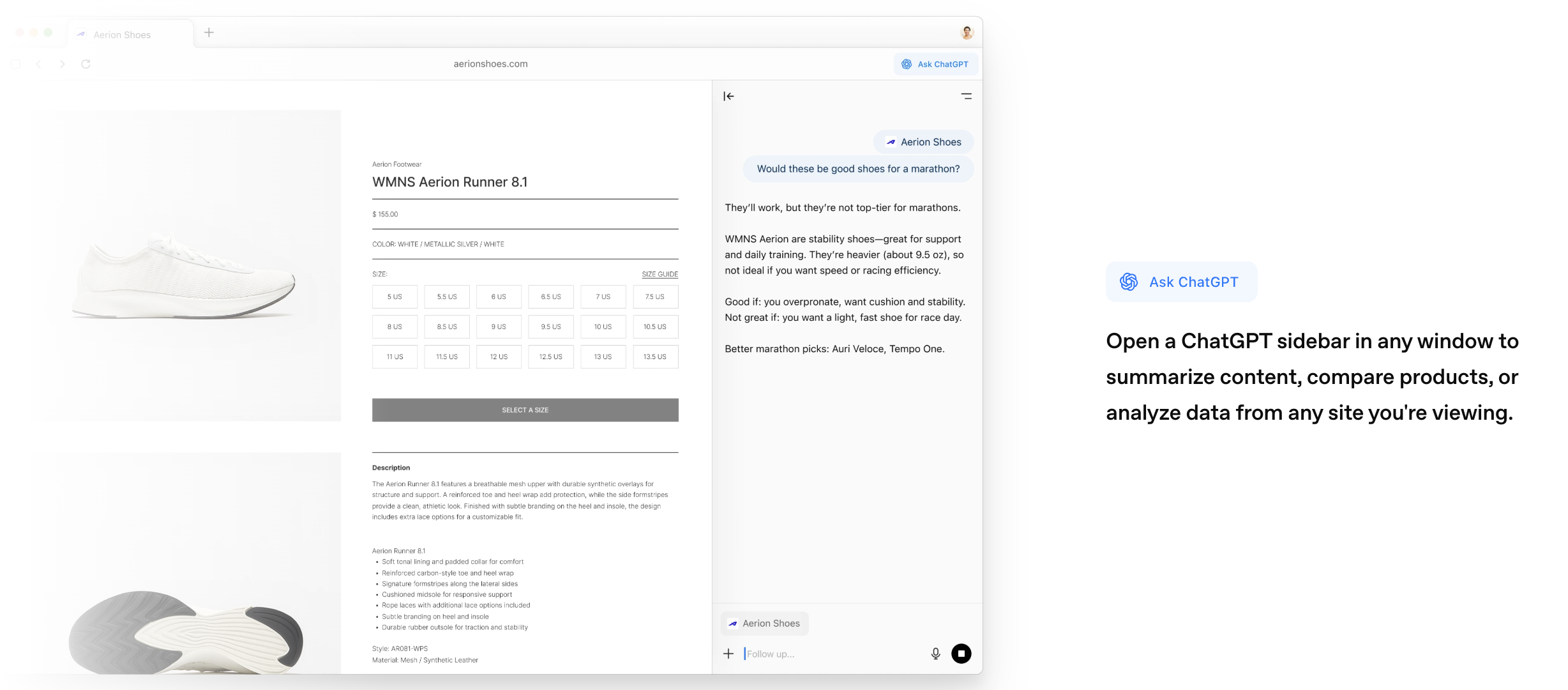 Atlas may look minimal, but it functions more like a hands-on research assistant. Users can highlight text on any page and ask ChatGPT to summarize, explain, or help draft responses. The browser remembers past activity and prompts across tabs, creating a more personalized user experience over time. It includes built-in features that help complete tasks, gather product options, and assist as you type. There are also visual search tools for filtering results by images, video, and news.