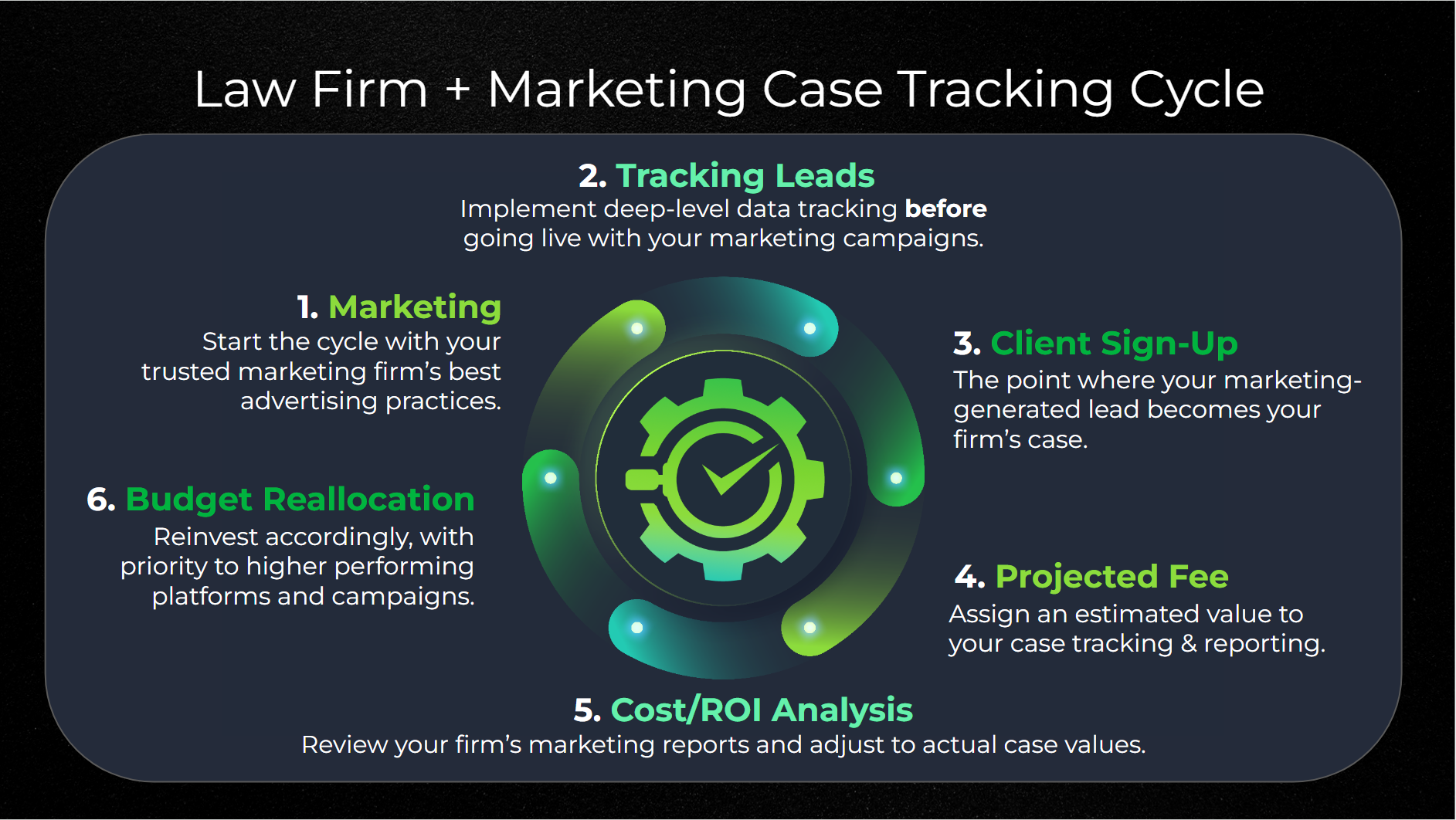 We’ve spent nearly 20 years building a process focused on performance data. That means we care less about vanity metrics like clicks and impressions and more about how many signed cases are actually coming through.